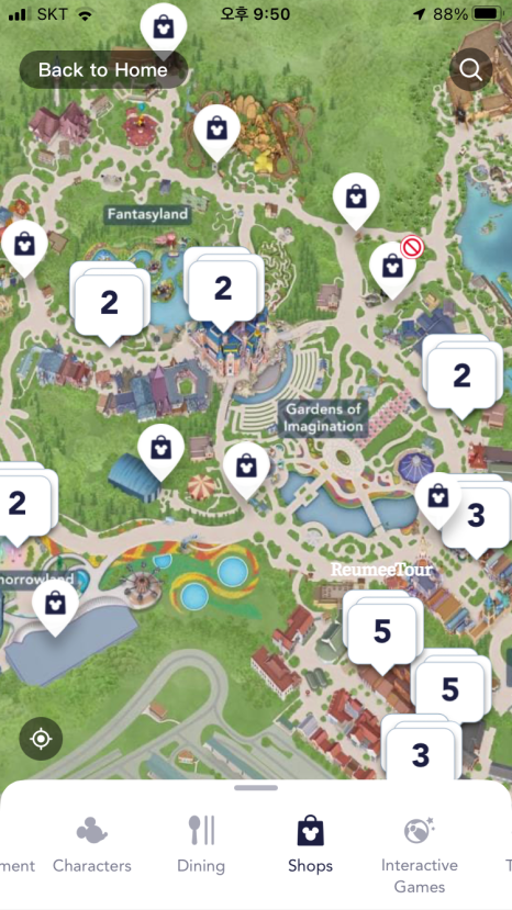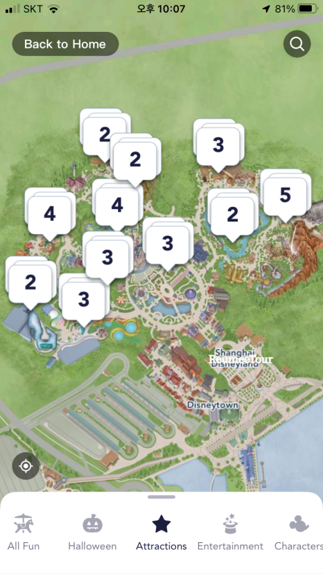 현재 내 위치, 어트랙션 위치, 대기 시간 등을 실시간으로 확인 가능하고,